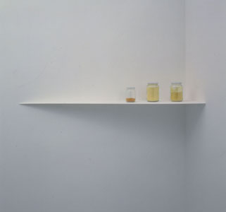 Dandelion pollen, Hazelnut pollen, Pine pollen on a shelf,